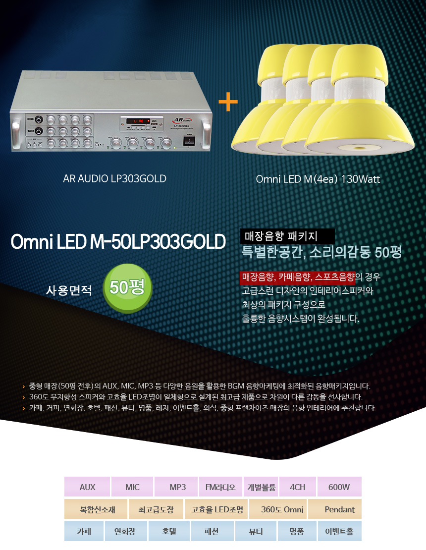 카페/음식점/매장음향패키지 Omni LED M-50LP303GOLD