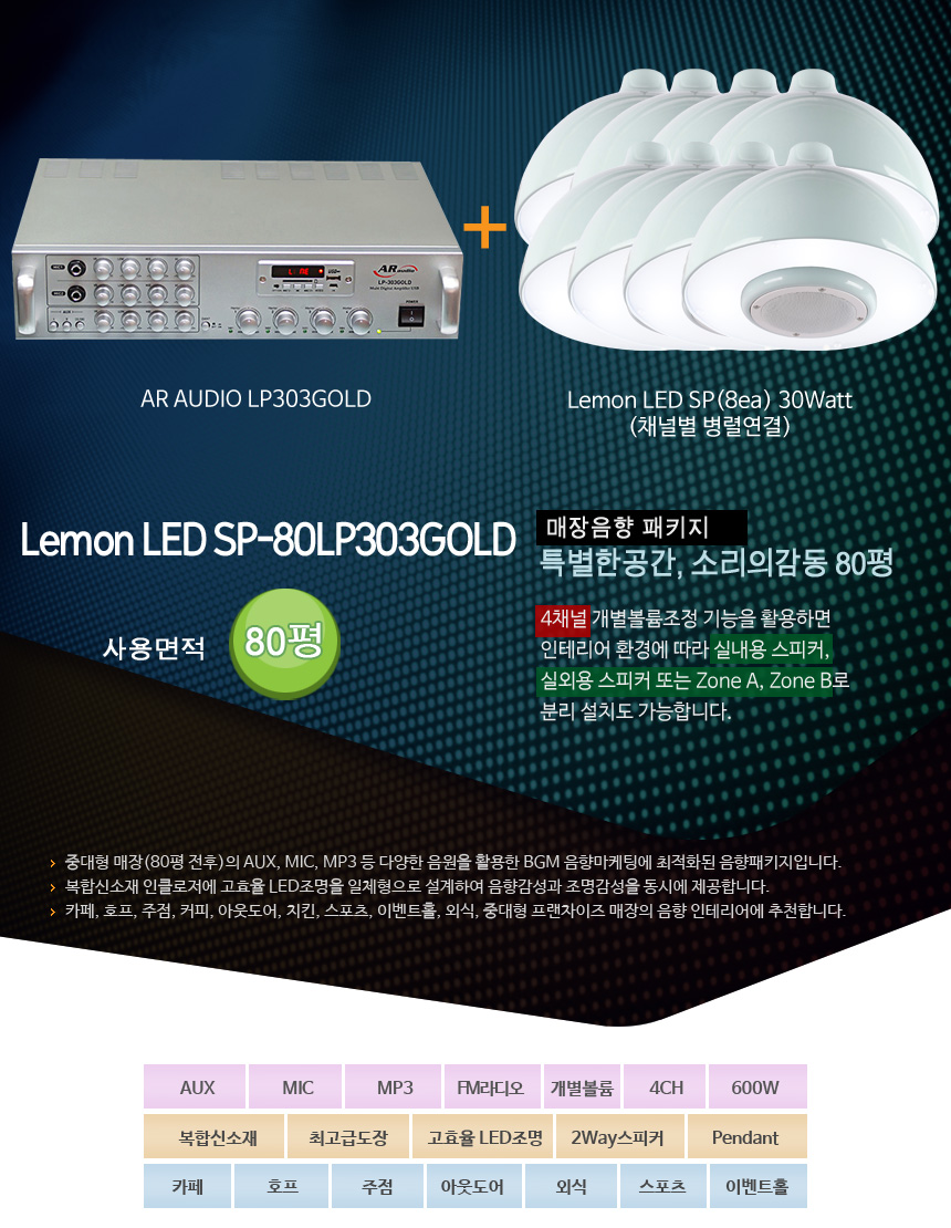 카페/음식점/매장음향패키지Lemon LED SP-80LP303GOLD