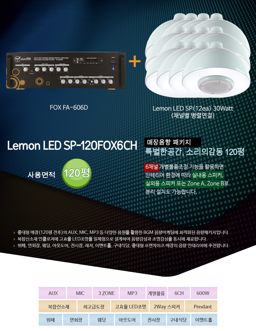 카페/음식점/매장음향패키지 Lemon LED SP-120FOX16CH